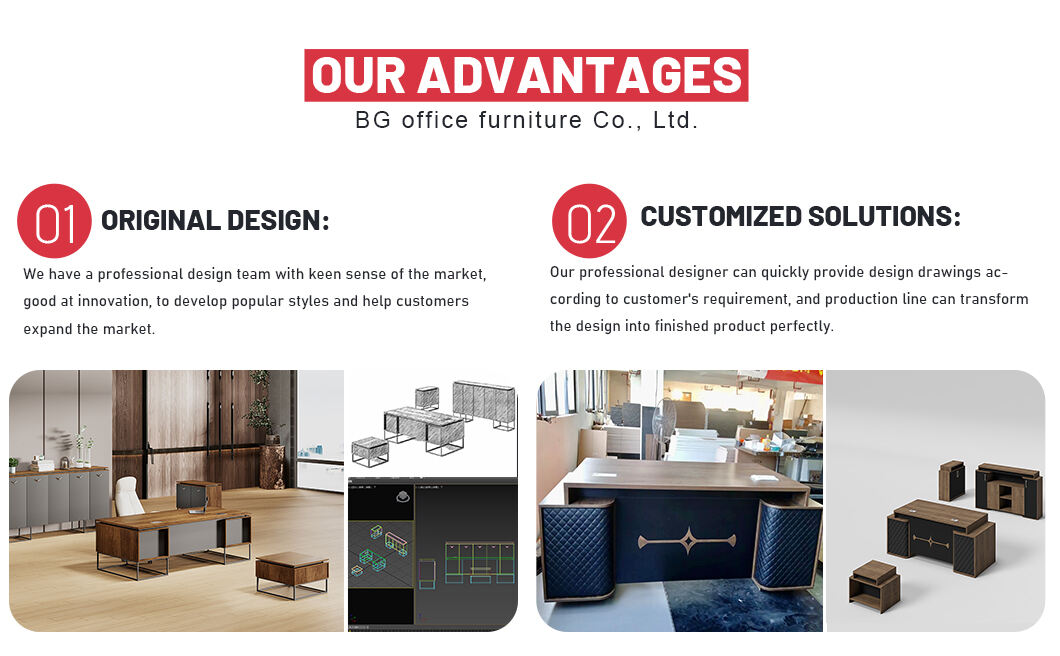מציגים את שולחן המשרדים המודרני שלנו בצורת L. סט זה כולל שולחן בצורת L, ארון ושולחן קפה. העיצוב הייחודי וערכת הצבעים הופכים את סט השולחנות לבולט. אנו מציעים מגוון צבעים וגדלים לבחירתכם, מה שמאפשר שילובים בהתאמה אישית כדי לעמוד בדרישותיכם.