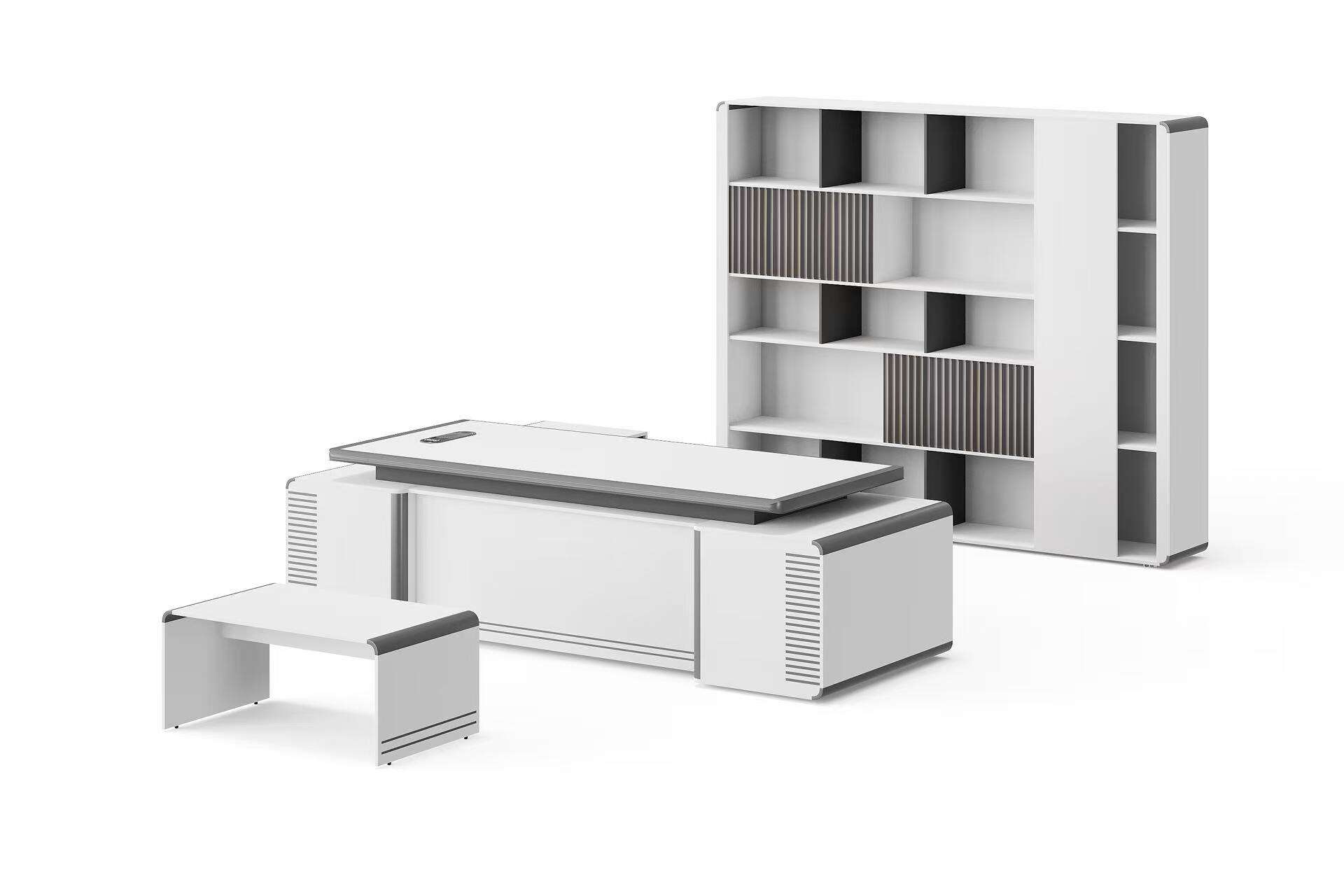 현대식 스타일의 L자형 사무용 테이블을 소개합니다. 이 세트는 L자형 테이블, 캐비닛 및 커피 테이블로 구성되어 있습니다. 독특한 디자인과 색상 조합으로 테이블 세트가 돋보입니다. 다양한 색상과 사이즈를 제공하여 고객의 요구에 맞게 맞춤형 조합이 가능합니다.