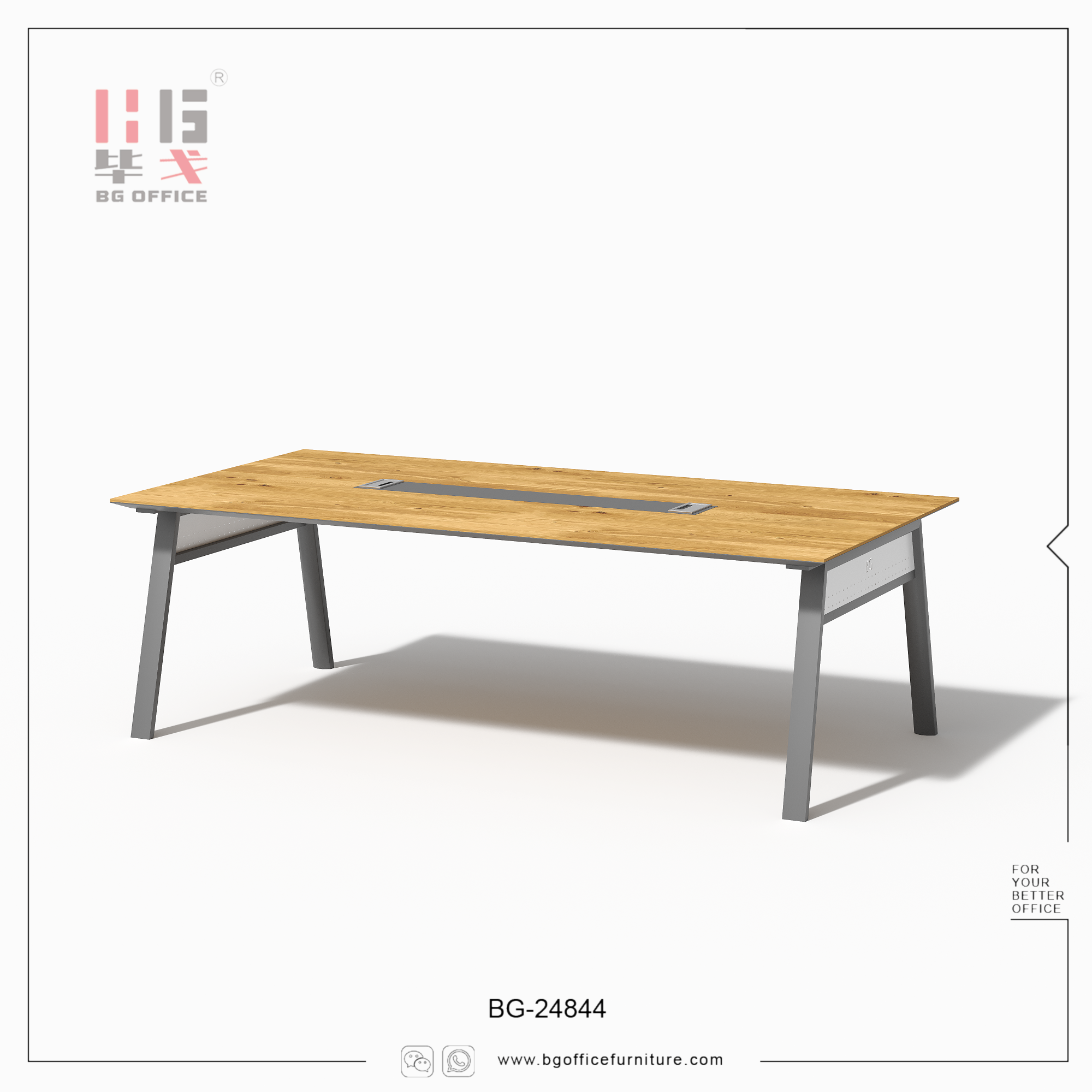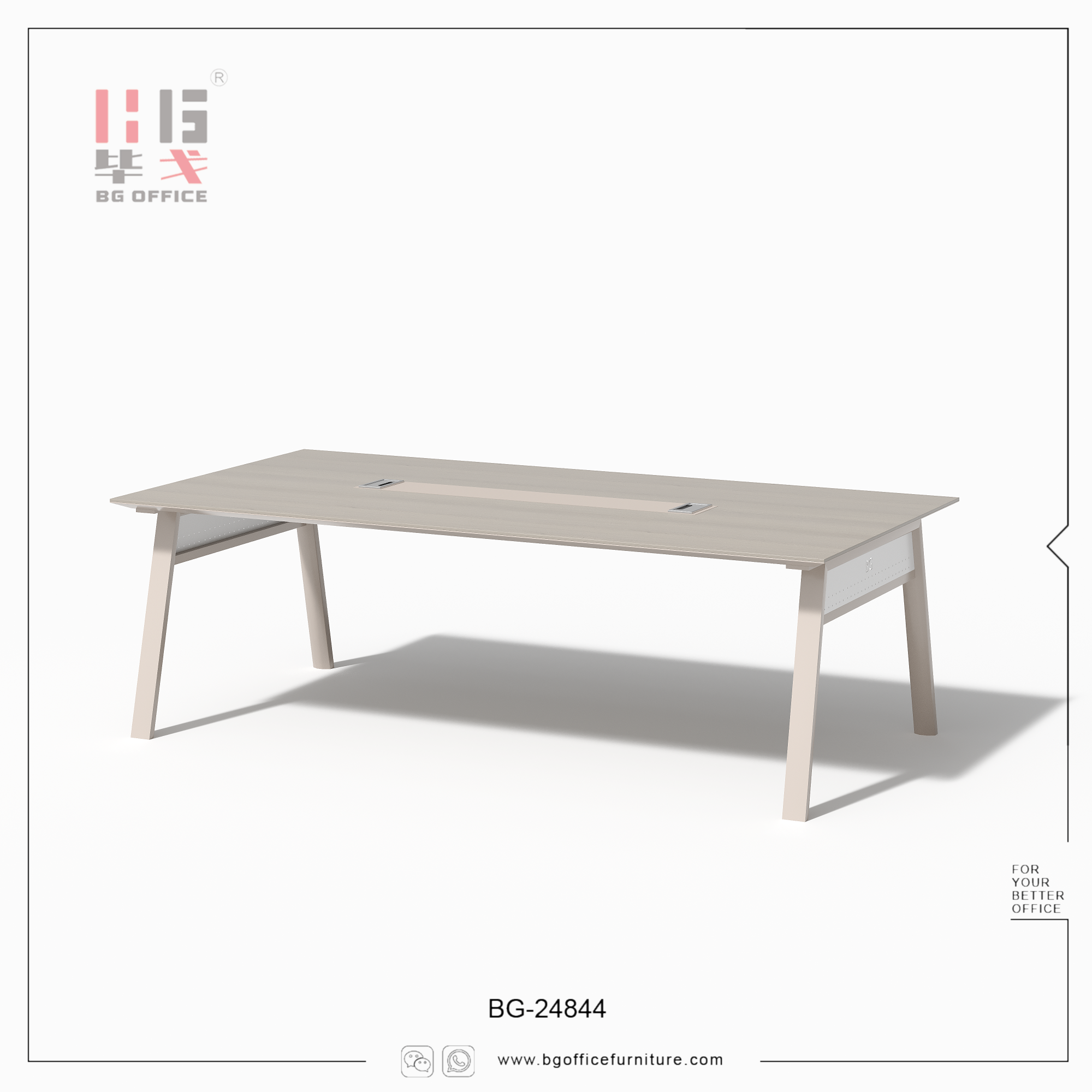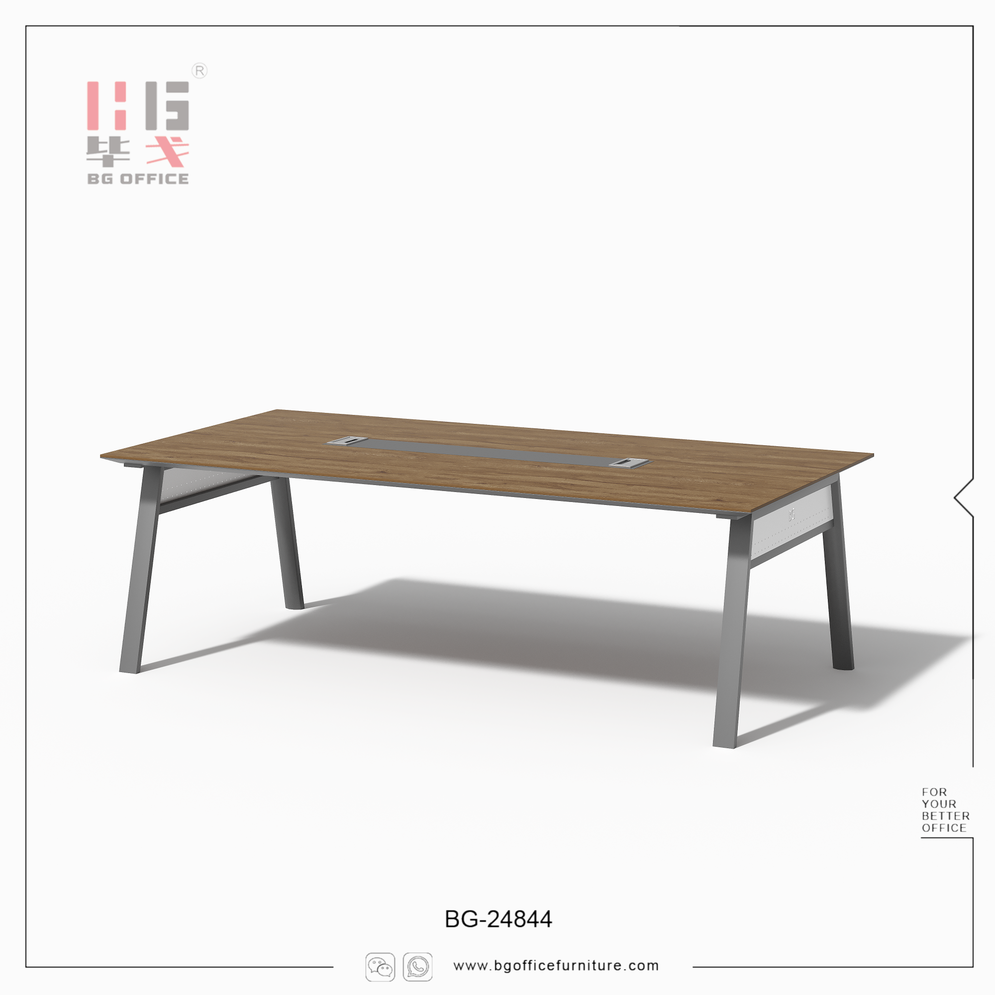 Introducing our modern-style conference table. This conference table is crafted from E0-grade melamine-faced board, offering both excellent safety and an aesthetically pleasing design. If you're aiming to create a modern-styled conference room, this table is a superb choice.