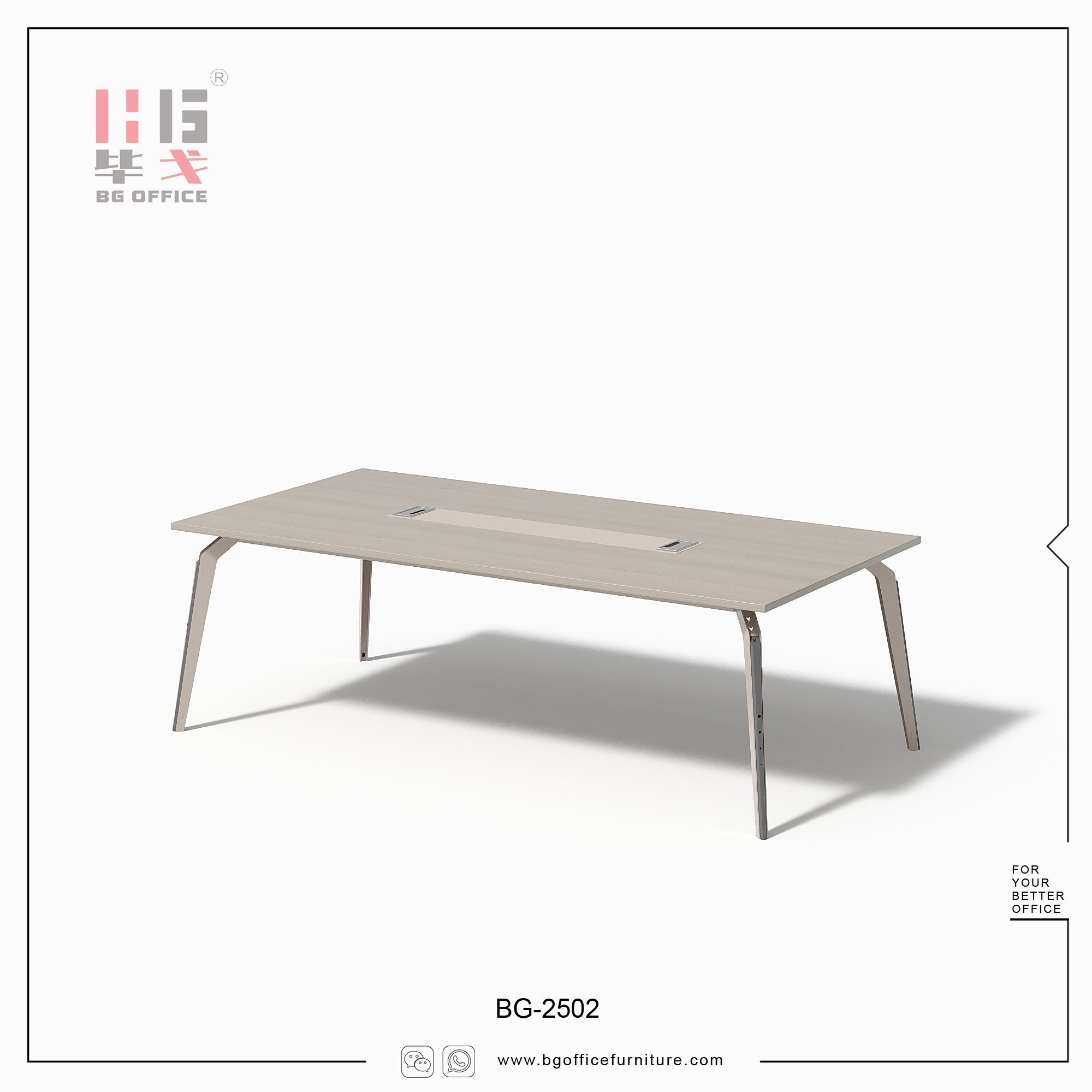 Introducing our modern-style conference table. This conference table is crafted from E0-grade melamine-faced board, offering both excellent safety and an aesthetically pleasing design. If you're aiming to create a modern-styled conference room, this table is a superb choice.