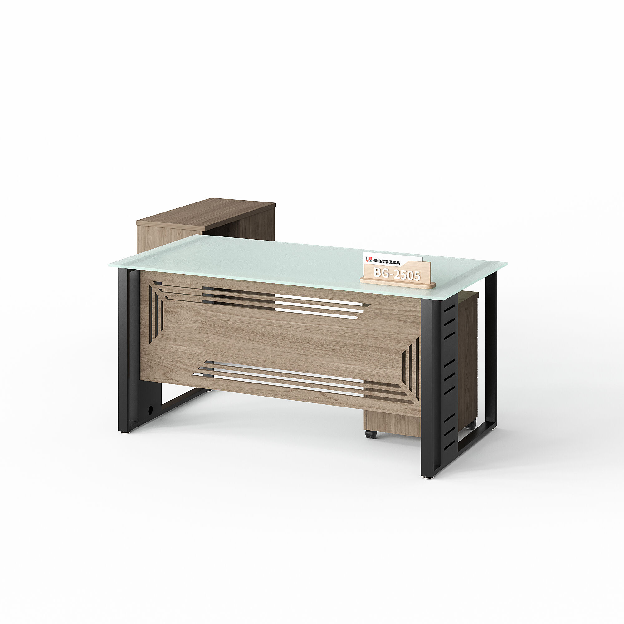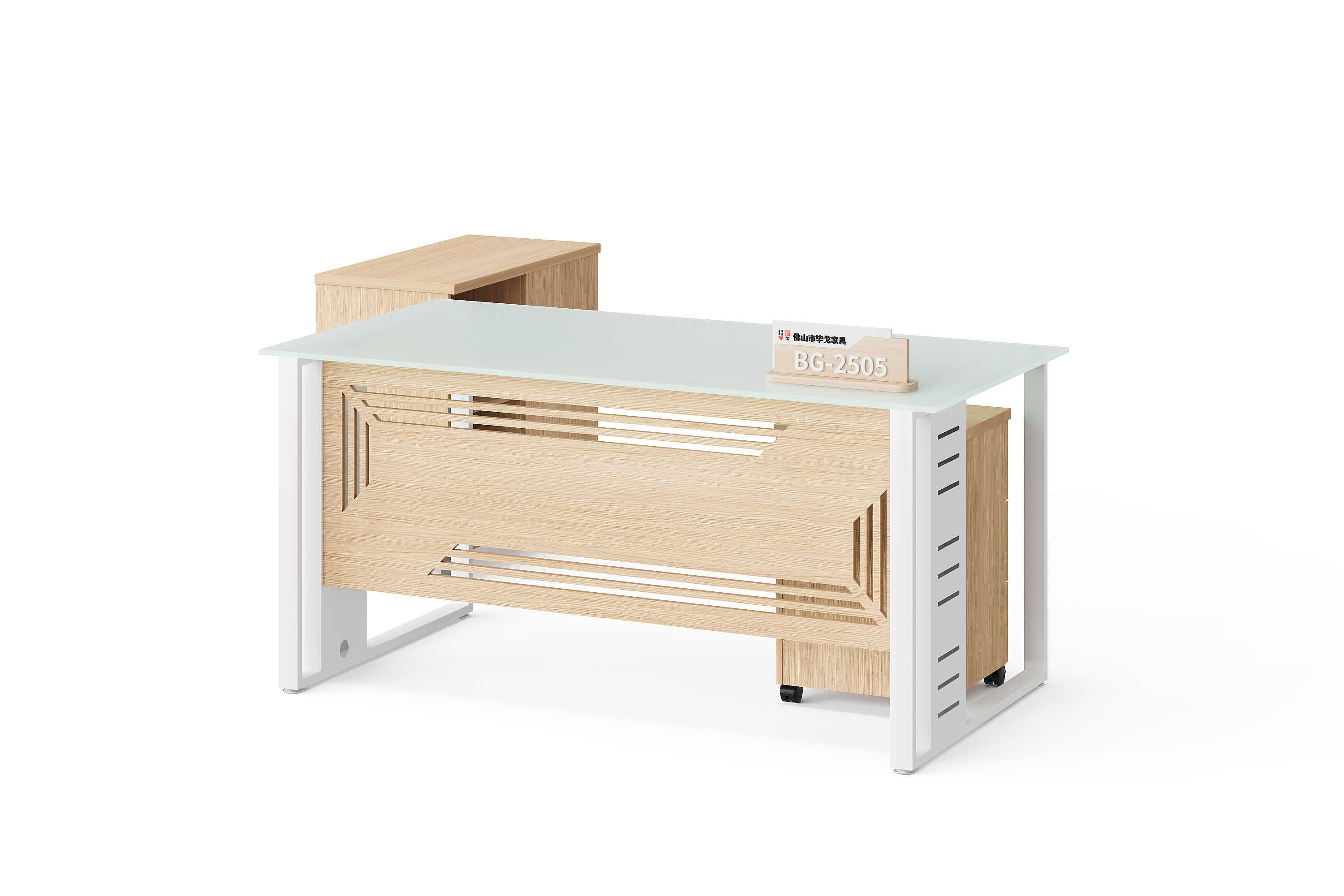 Introducing our modern-style glass office table. This set includes a glass office table , a side table and a mobile drawer, featuring a minimalist design that gives the table an overall sleek and elegant appearance. We also offer a variety of color options. With superior quality and competitive pricing, this table set will add a touch of vibrancy to your office.