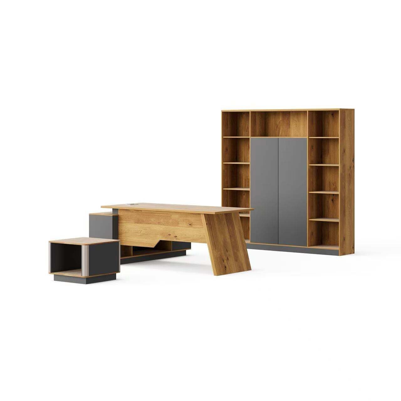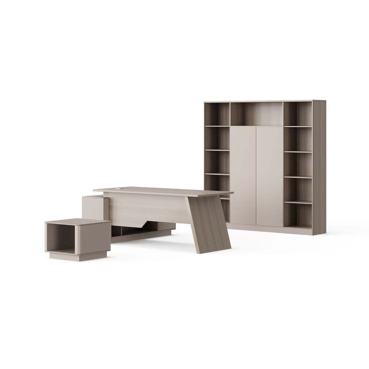 Introducing our modern-style L shape office table. This set includes a L shape table, a cabinet, and a coffee table. Its unique design and color scheme make the table set stand out. We offer a variety of colors and sizes for you to choose from, allowing for customizable combinations to meet your needs.