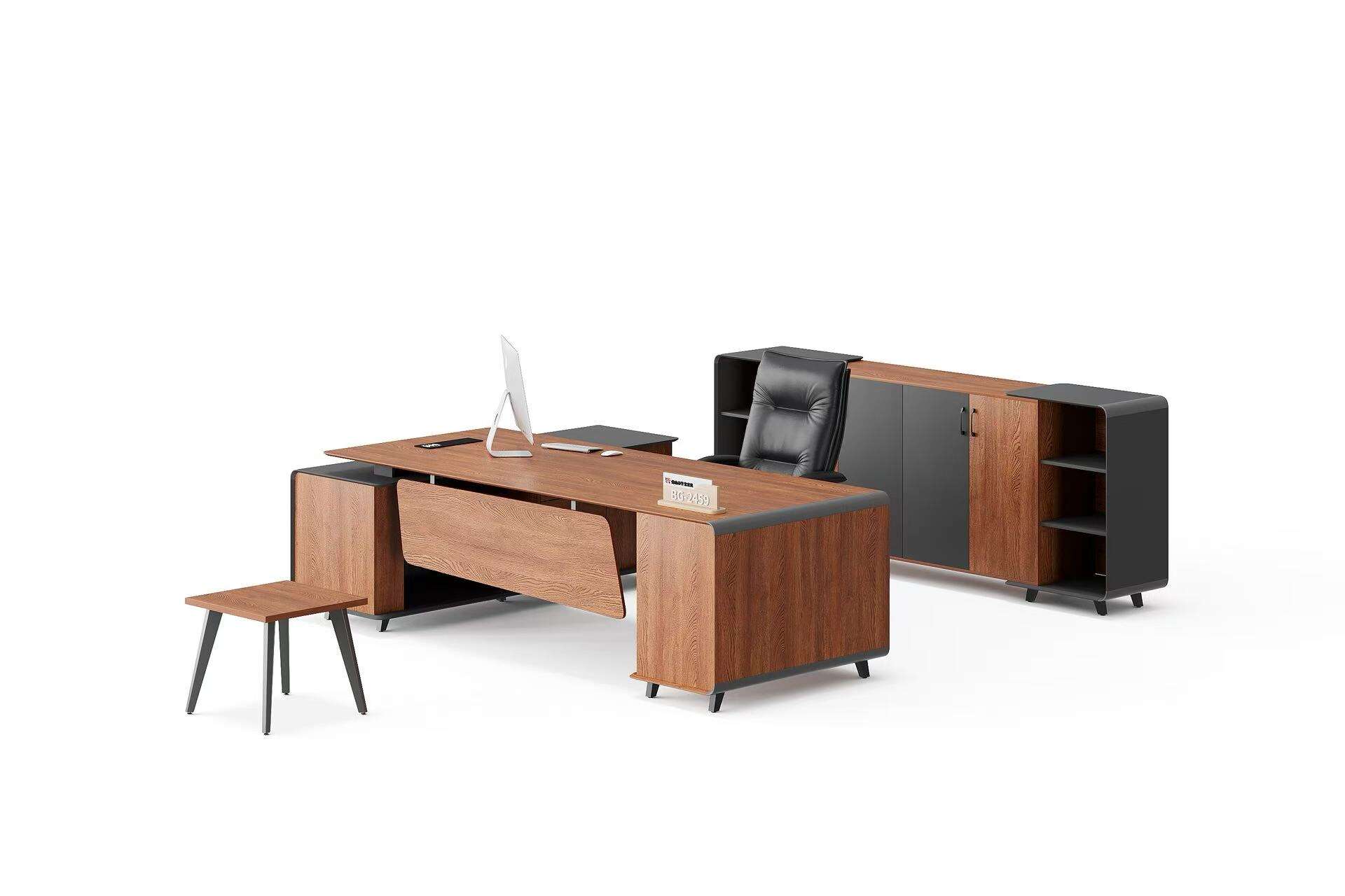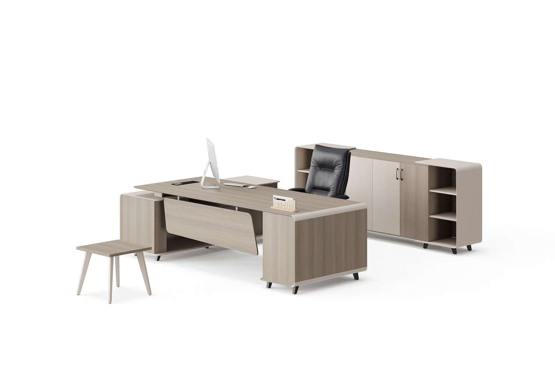 Introducing our modern-style L shape office table. This set includes a L shape table, a cabinet, and a coffee table. Its unique design and color scheme make the table set stand out. We offer a variety of colors and sizes for you to choose from, allowing for customizable combinations to meet your needs.