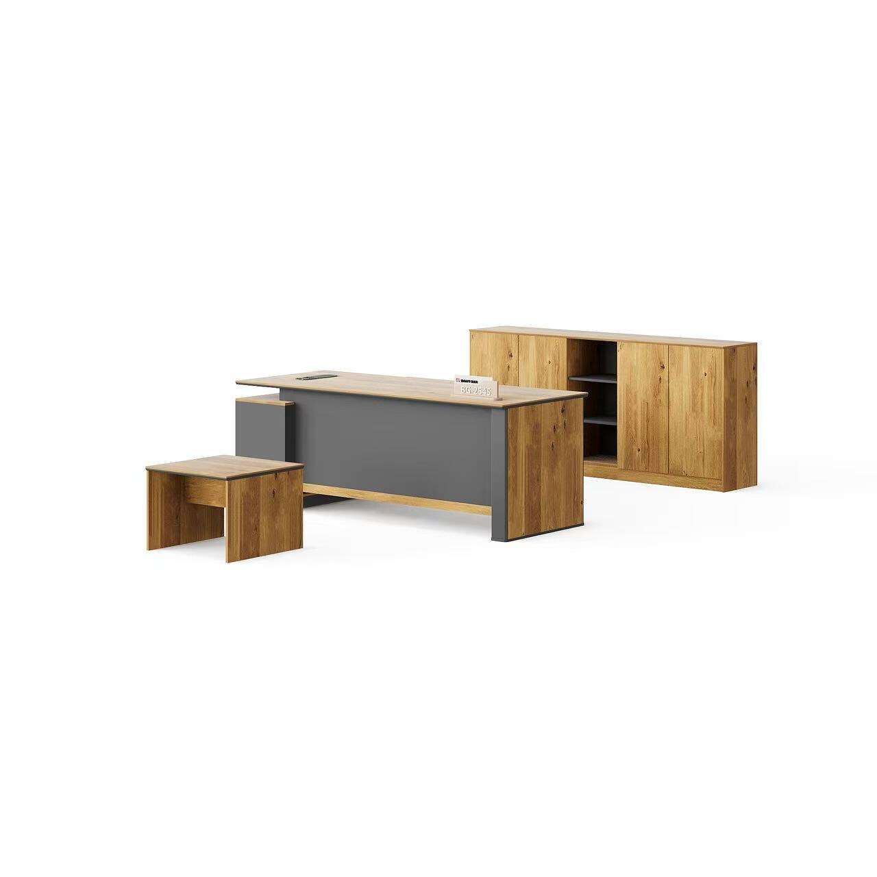Introducing our modern-style office table. This set includes a L shape table, a cabinet, and a coffee table. Its unique design and color scheme make the desk set stand out. We offer a variety of colors and sizes for you to choose from, allowing for customizable combinations to meet your needs.