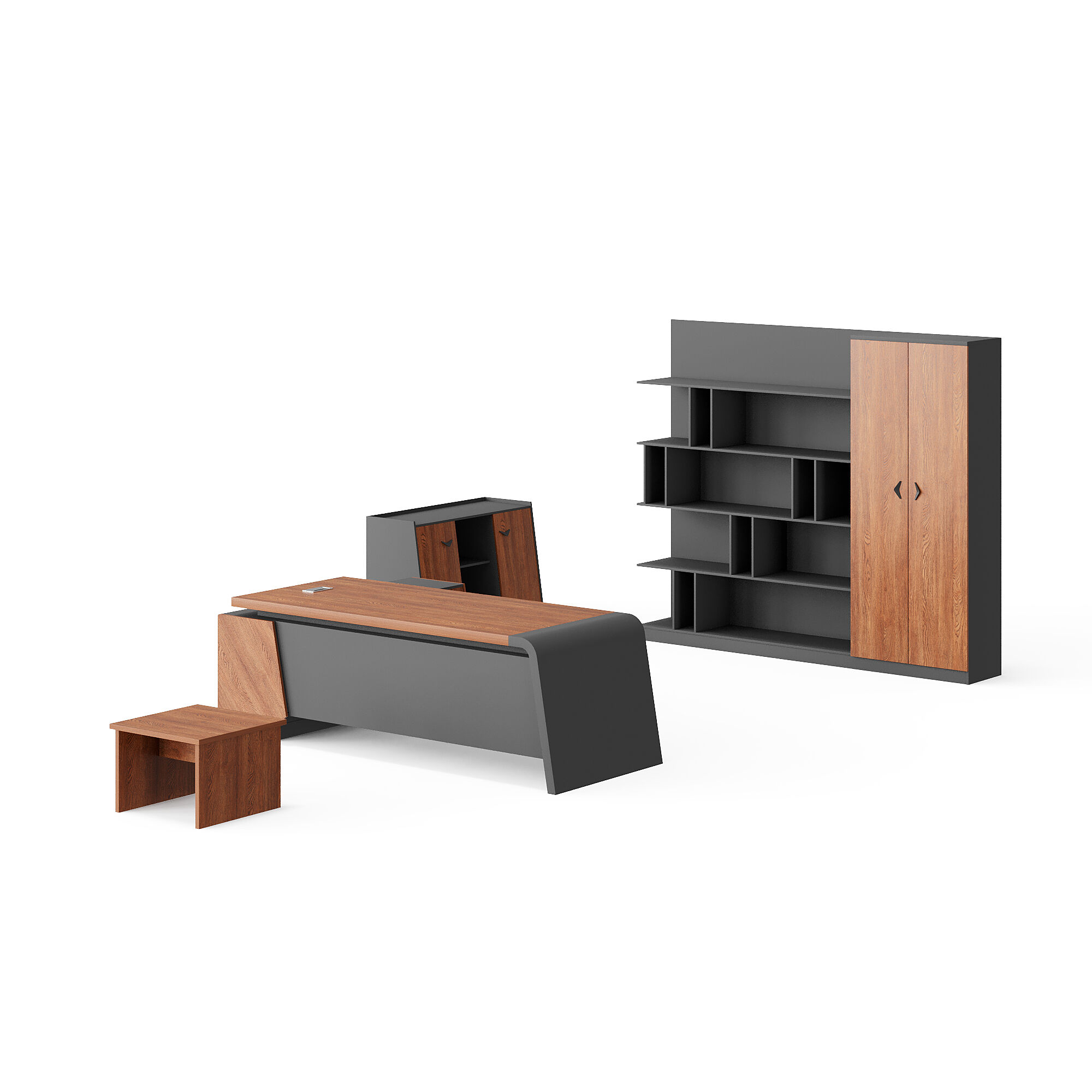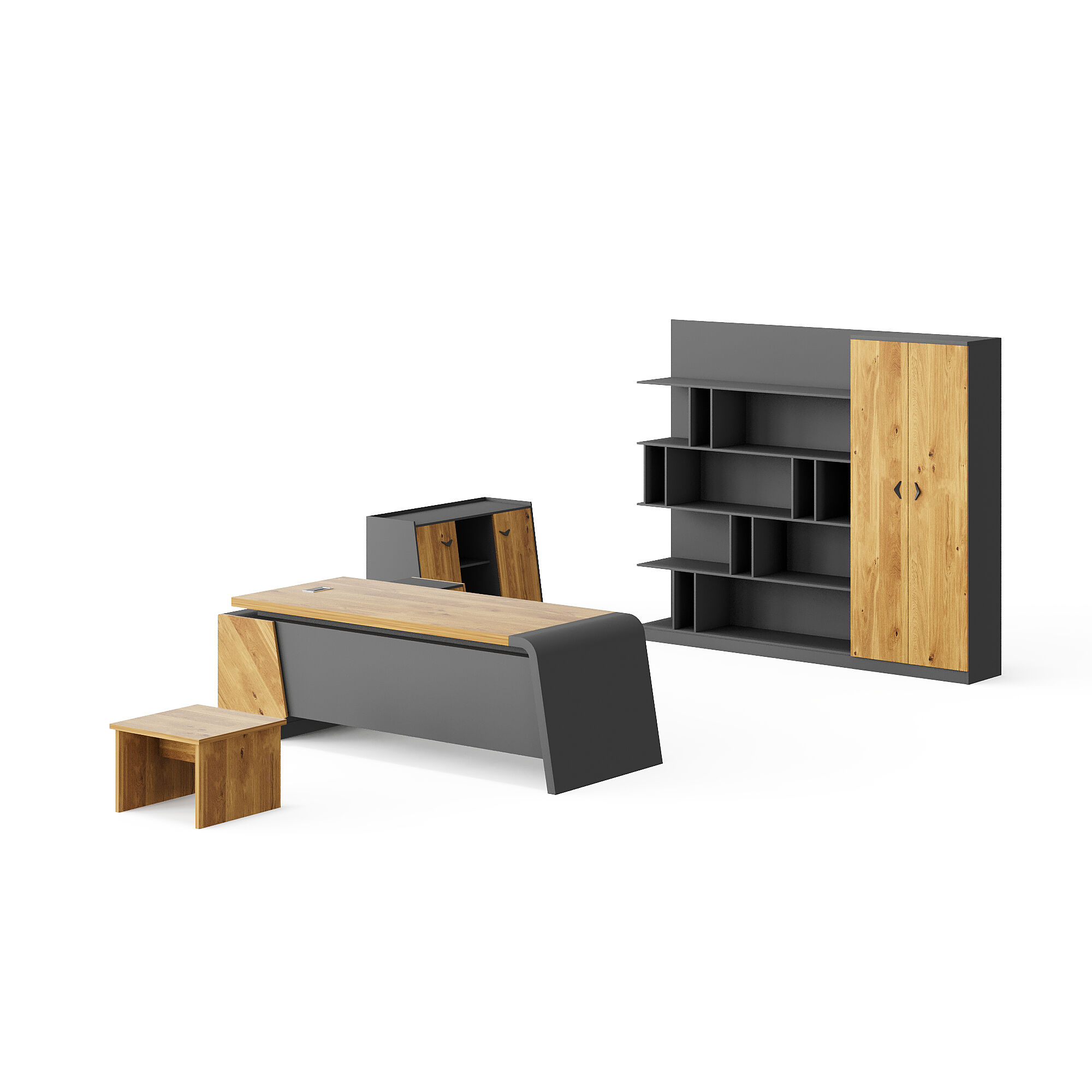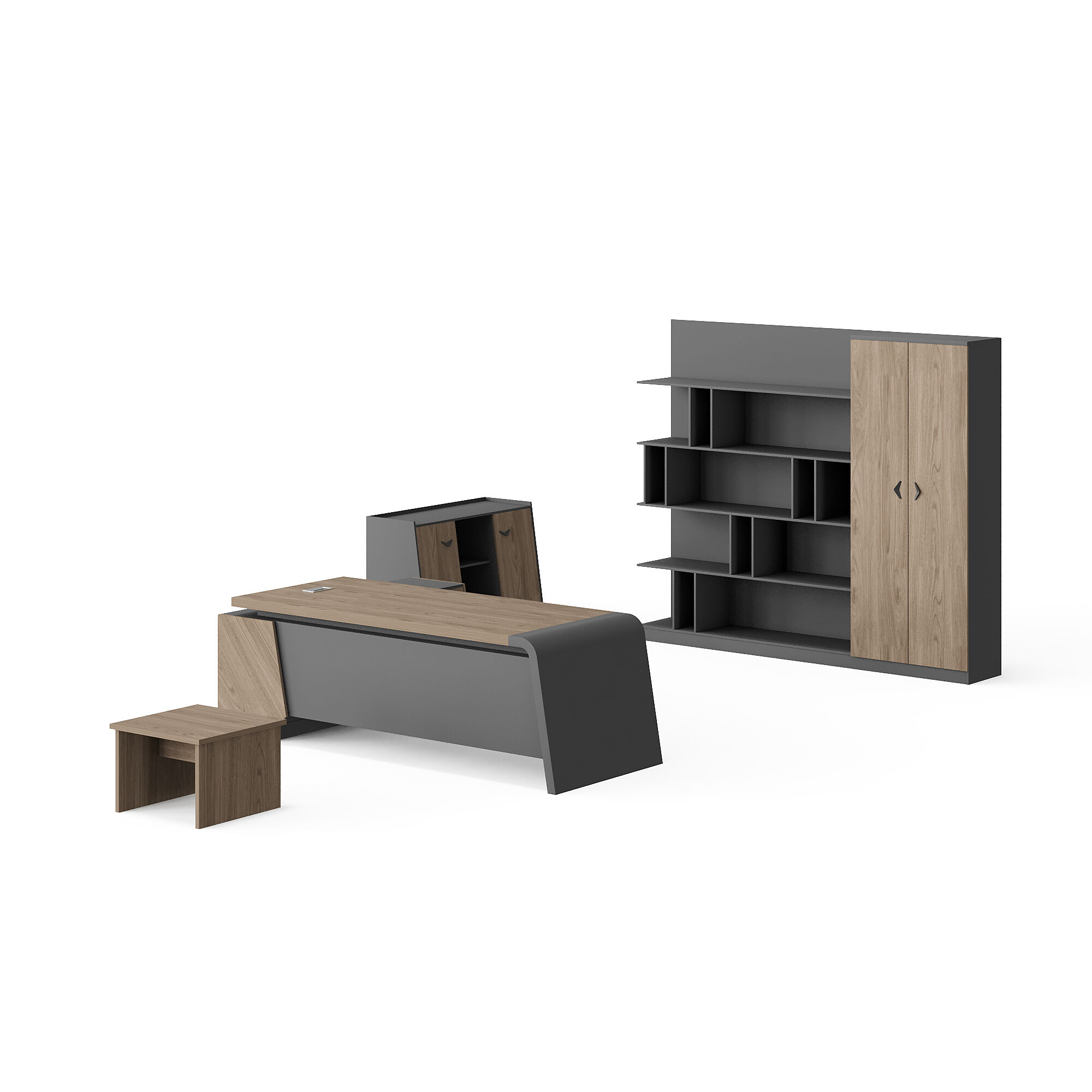 ntroducing our modern-style L shape office table. This set includes a L shape table, a cabinet, and a coffee table. Its unique design and color scheme make the table set stand out. We offer a variety of colors and sizes for you to choose from, allowing for customizable combinations to meet your needs.