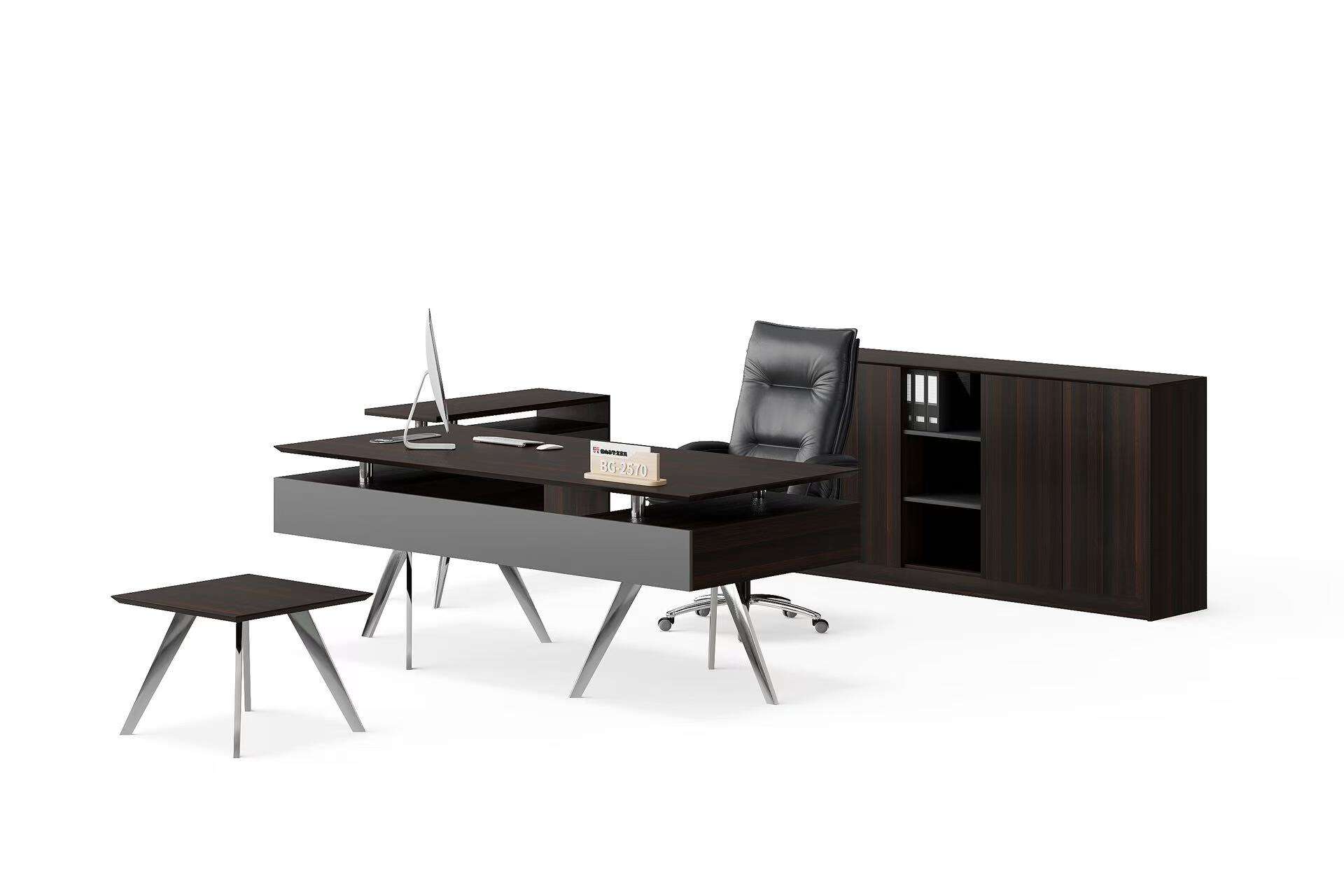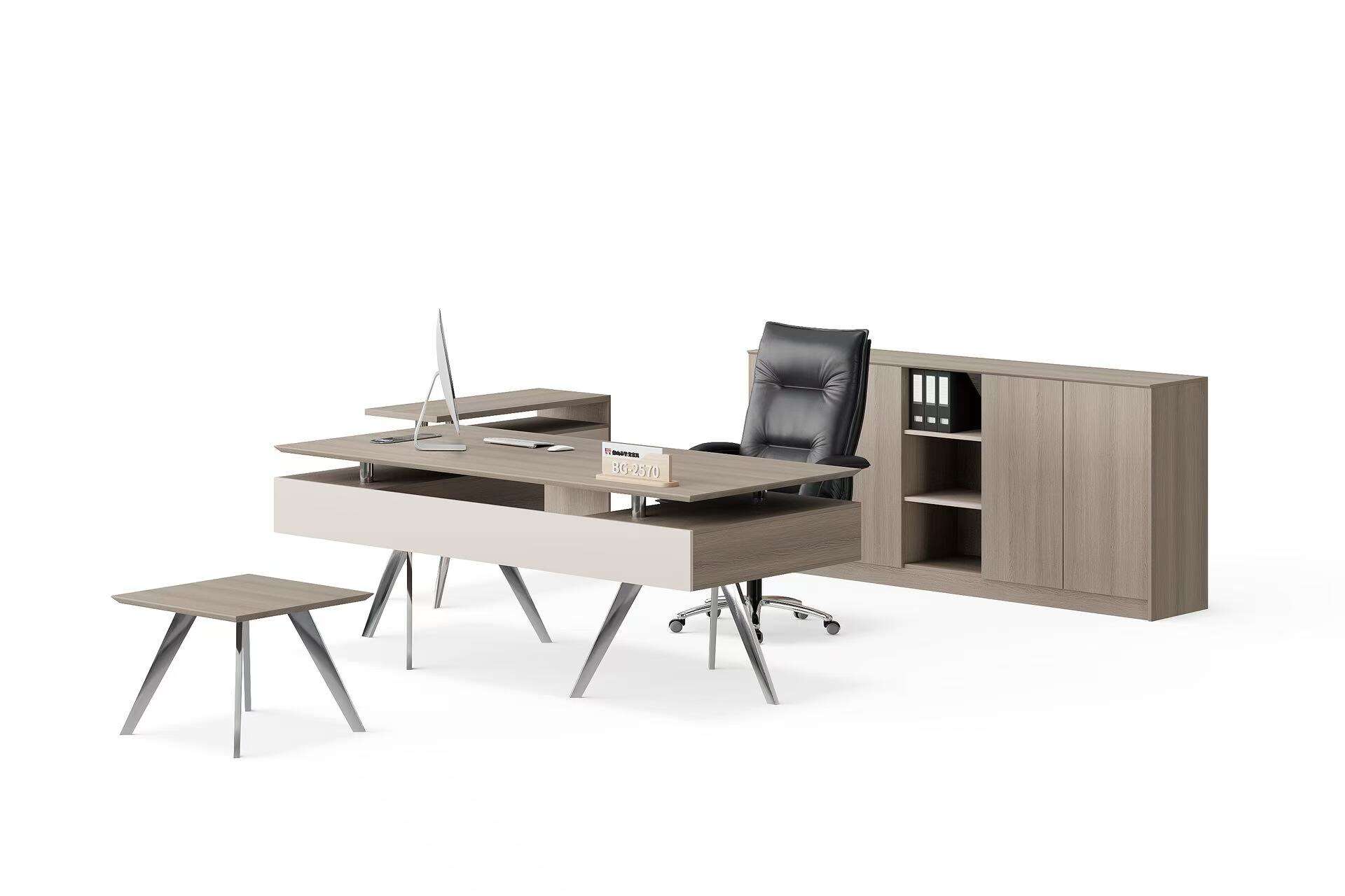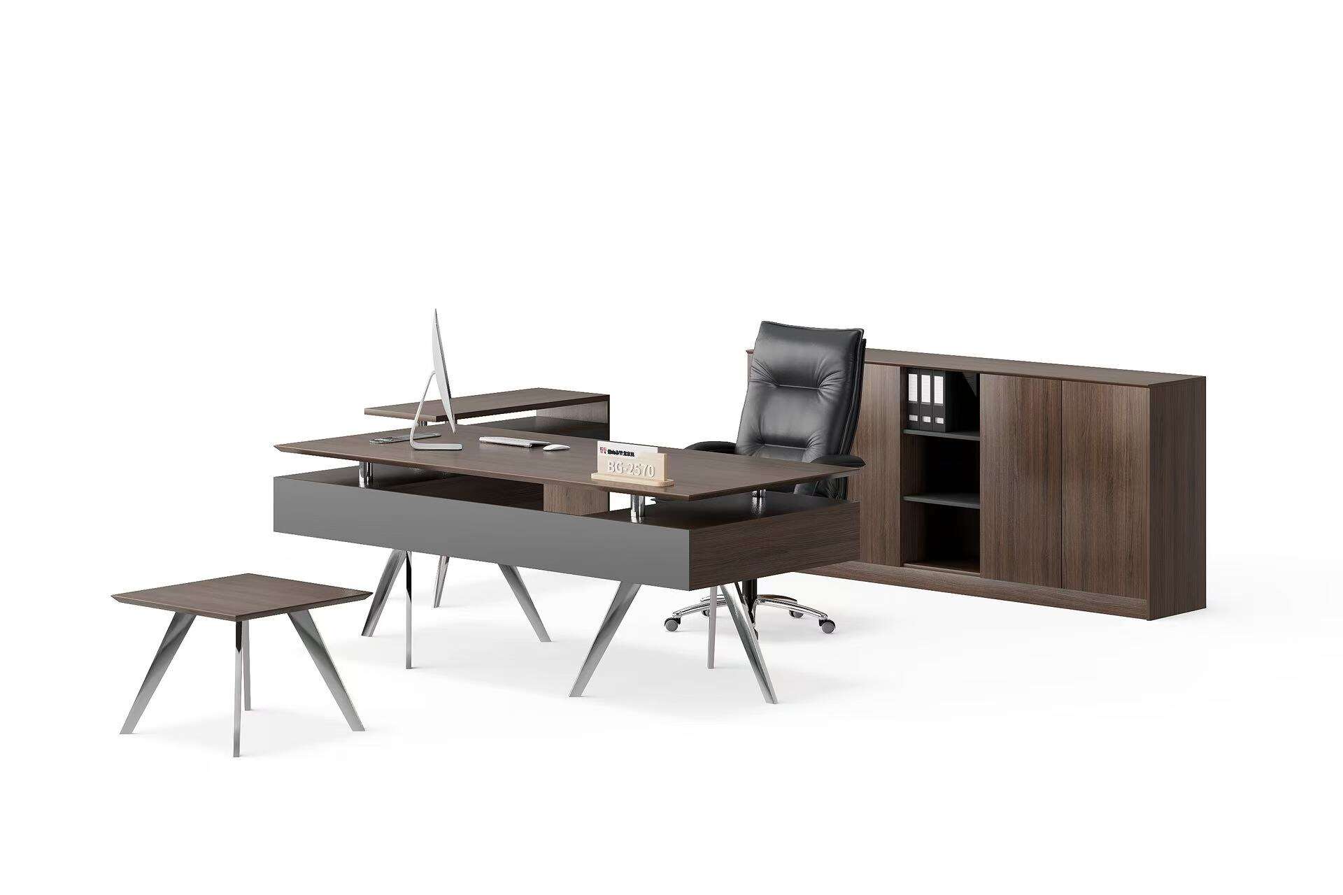Introducing our modern-style office table. This set includes an office table, a side table, a cabinet, and a coffee table. Its unique design and color scheme make the table set stand out. We offer a variety of colors and sizes for you to choose from, allowing for customizable combinations to meet your needs.