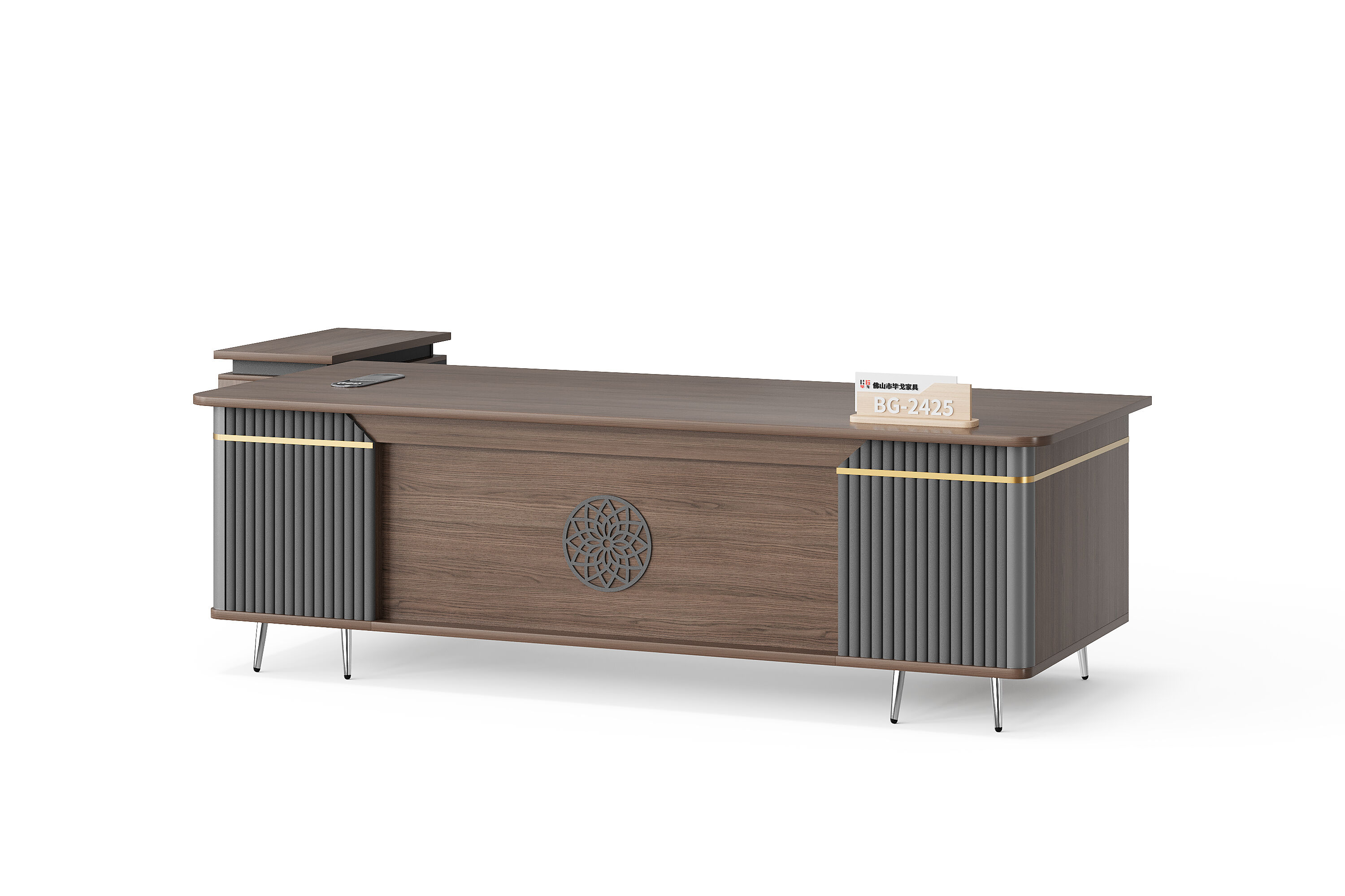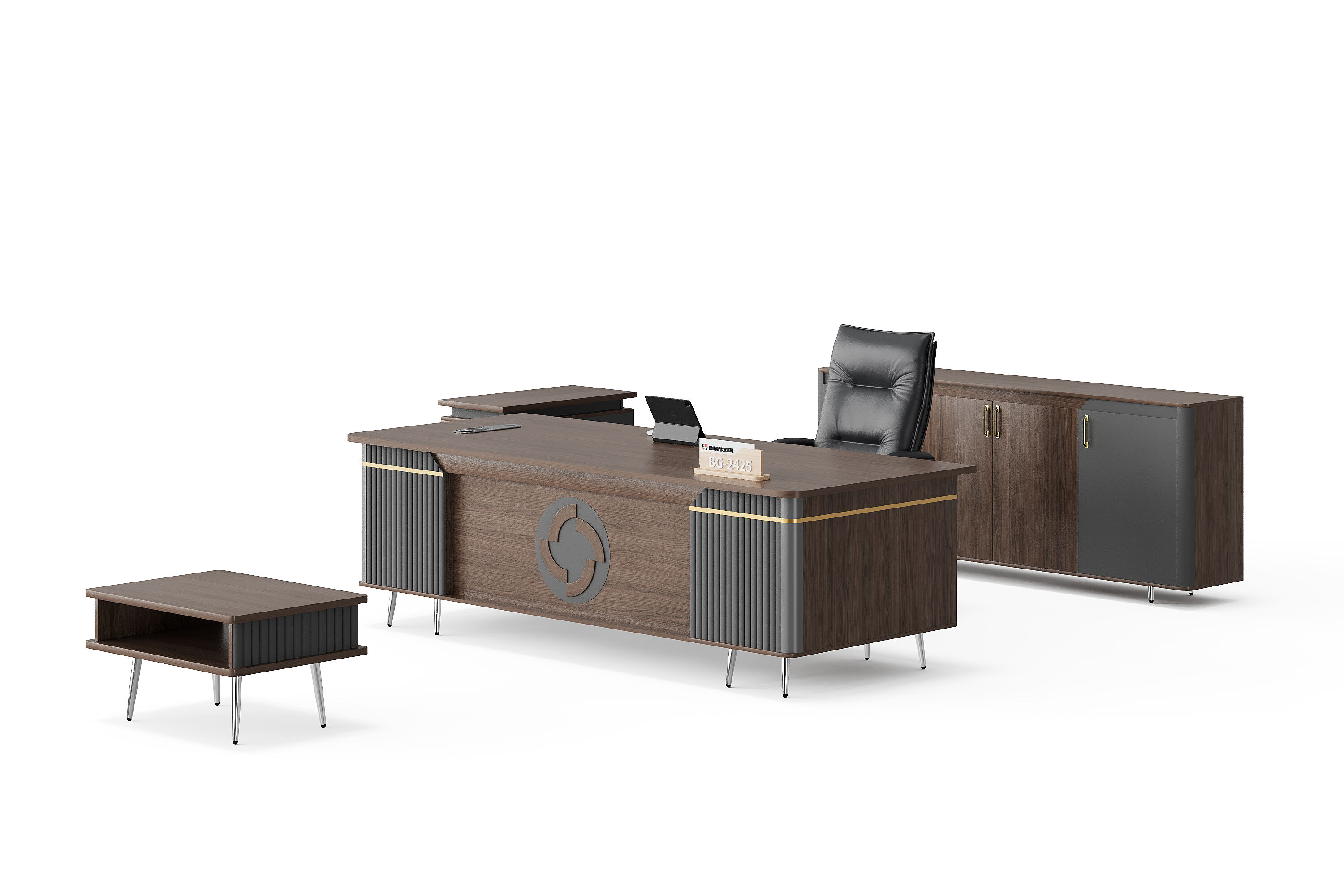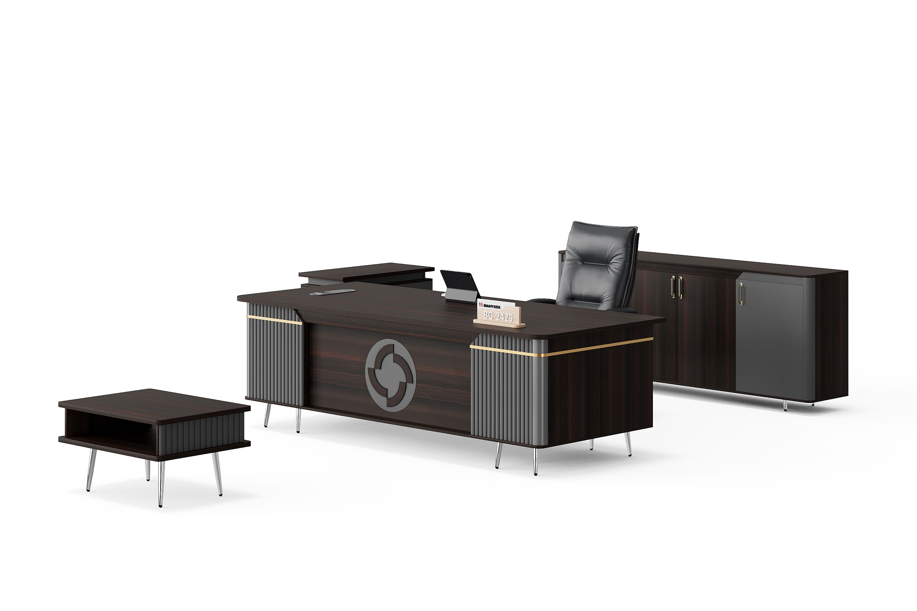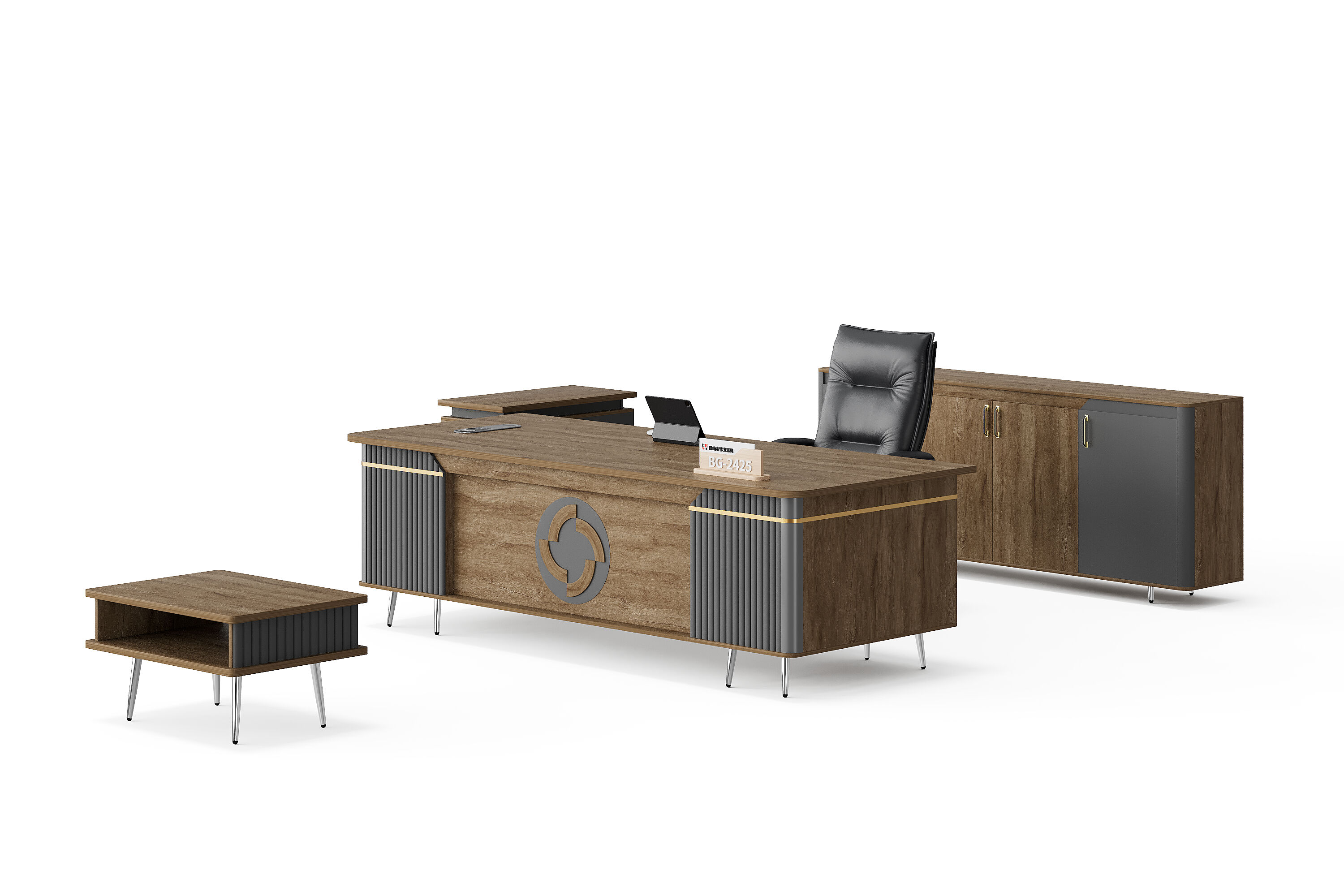 Introducing our modern-style office table. This set includes an office table, a side table, a cabinet, and a coffee table. Its unique design and color scheme make the table set stand out. We offer a variety of colors and sizes for you to choose from, allowing for customizable combinations to meet your needs.