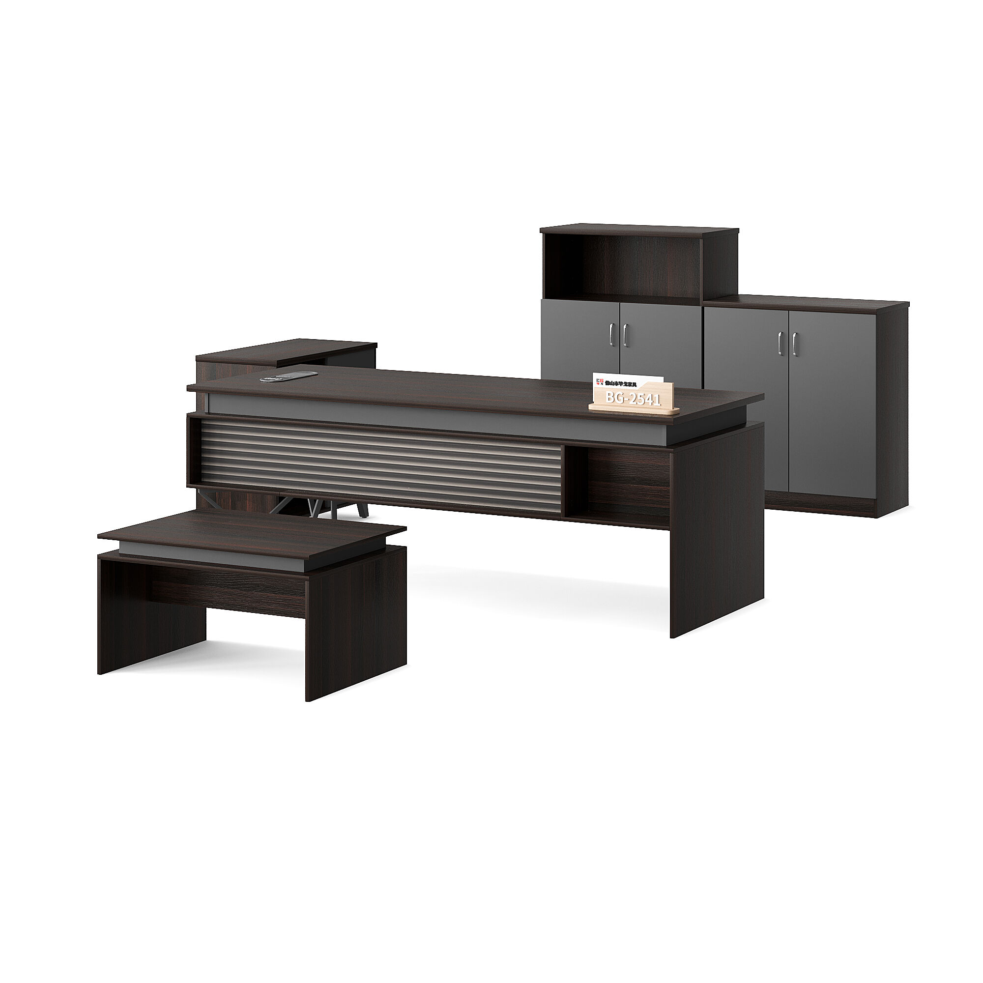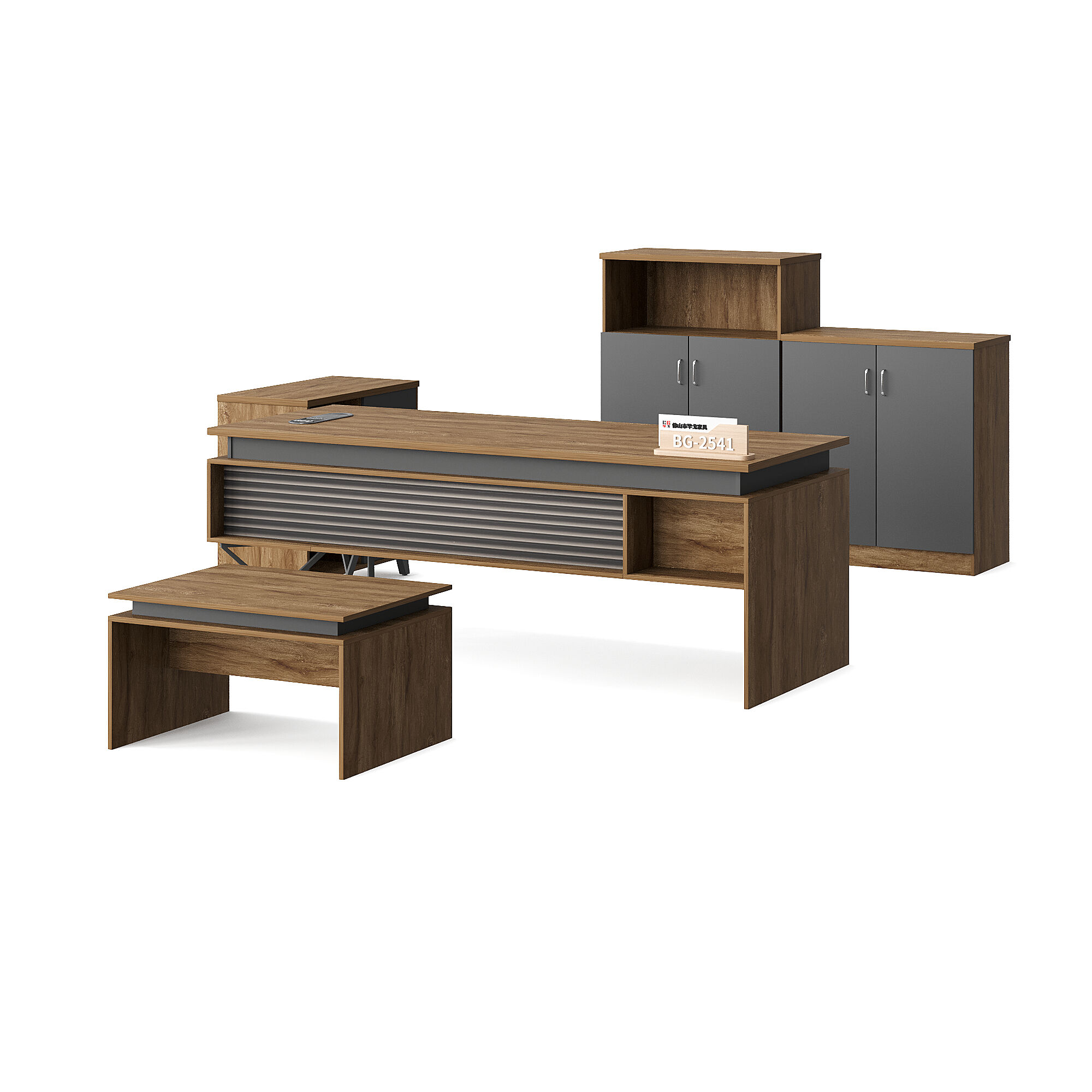 Introducing our modern-style office table. This set includes office table, a side table, a cabinet, and a coffee table. Its unique design and color scheme make the desk set stand out. We offer a variety of colors and sizes for you to choose from, allowing for customizable combinations to meet your needs.
