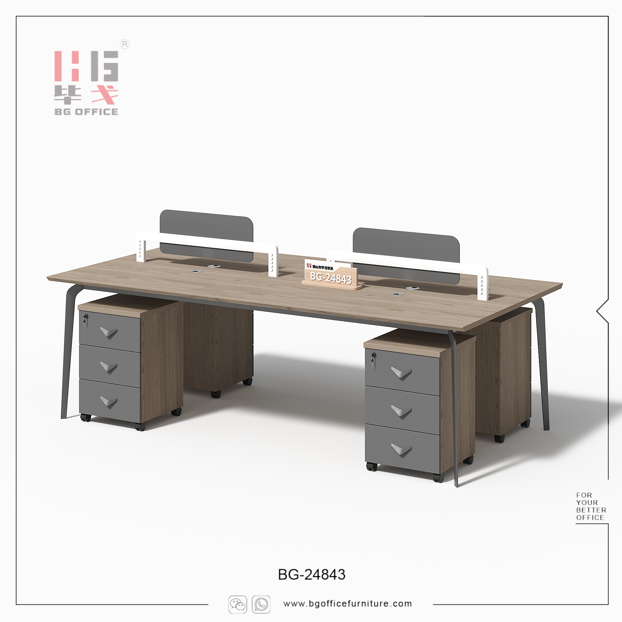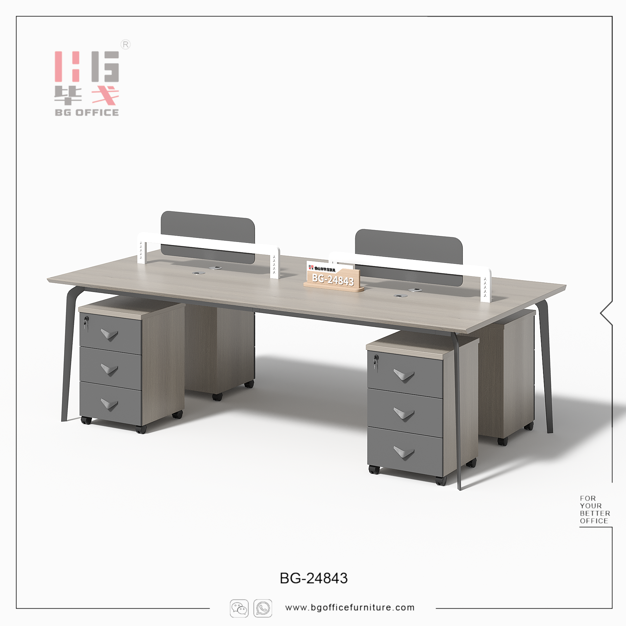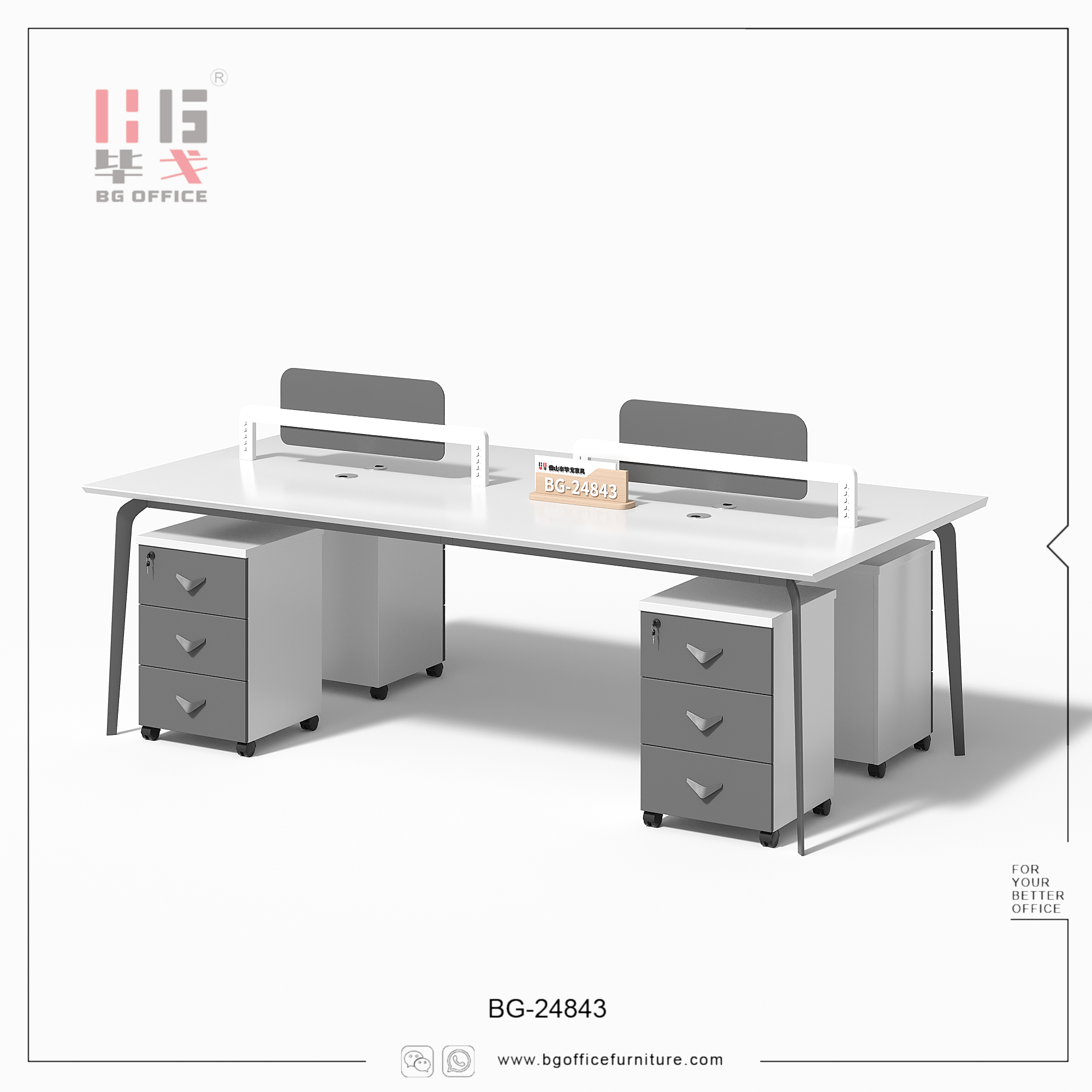 Introducing our 2/4 seats workstation. This workstation comprises 2/4 individual seats, each equipped with a mobile drawer. The material we utilize is E0-grade melamine board, renowned for its superior quality, aesthetically pleasing appearance, high safety standards, and a wide range of color options. Opting for this workstation not only provides employees with a favorable office environment but also significantly enhances their work efficiency.