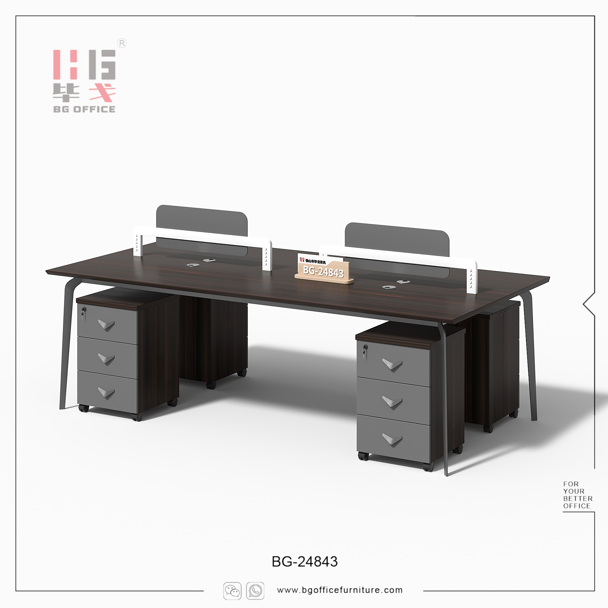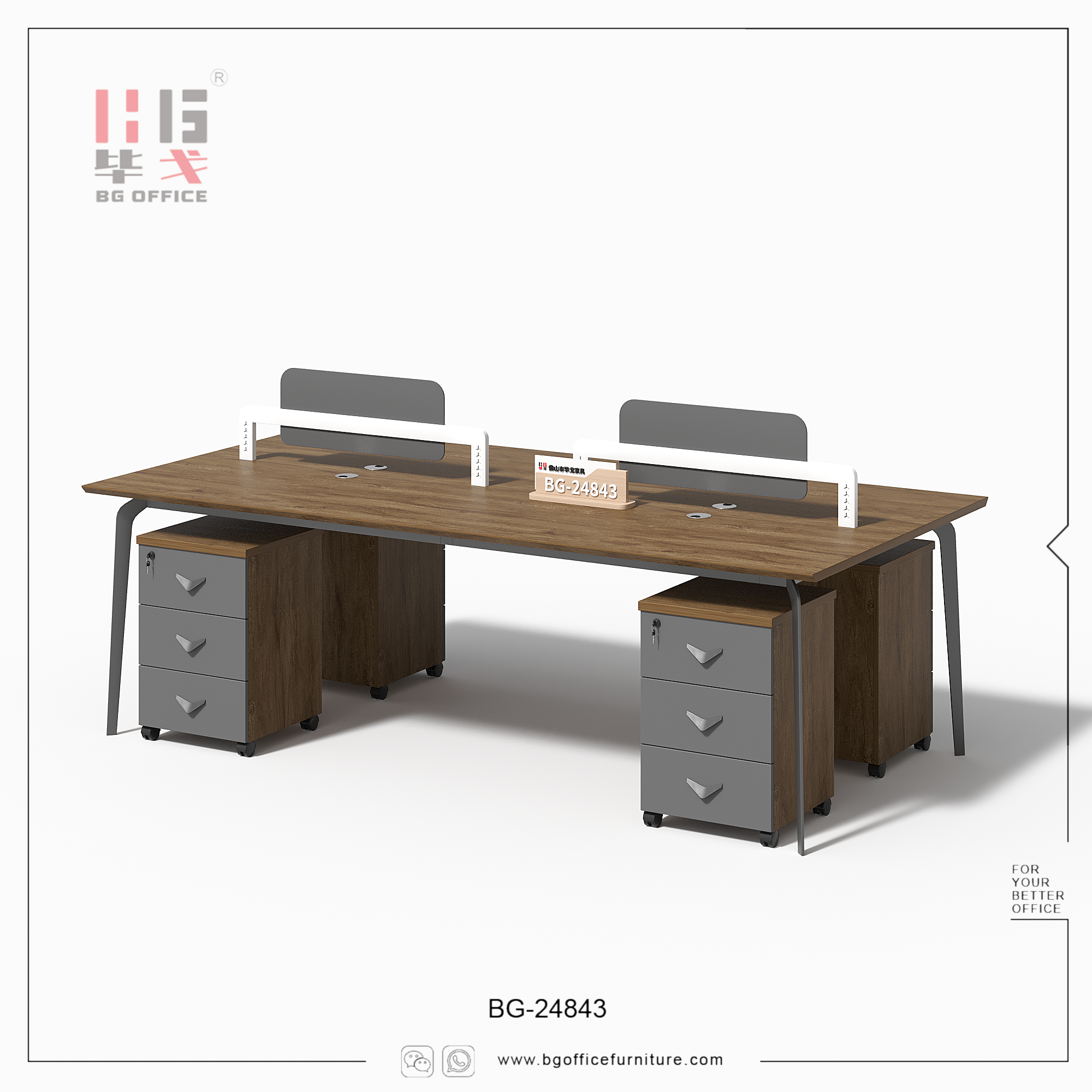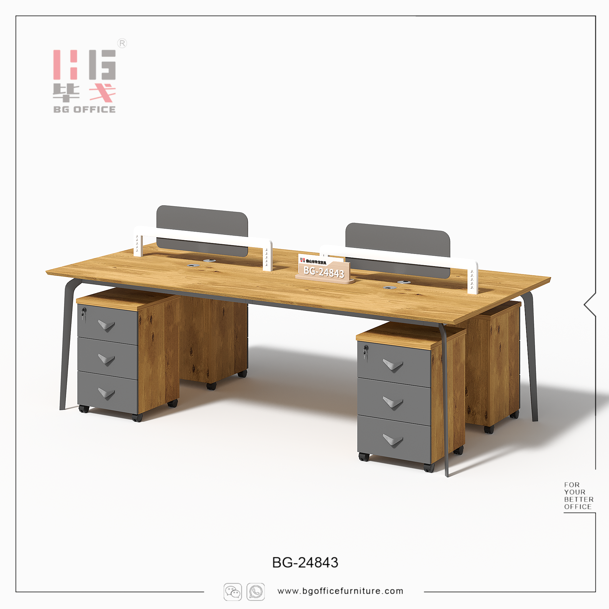 Introducing our 2/4 seats workstation. This workstation comprises 2/4 individual seats, each equipped with a mobile drawer. The material we utilize is E0-grade melamine board, renowned for its superior quality, aesthetically pleasing appearance, high safety standards, and a wide range of color options. Opting for this workstation not only provides employees with a favorable office environment but also significantly enhances their work efficiency.
