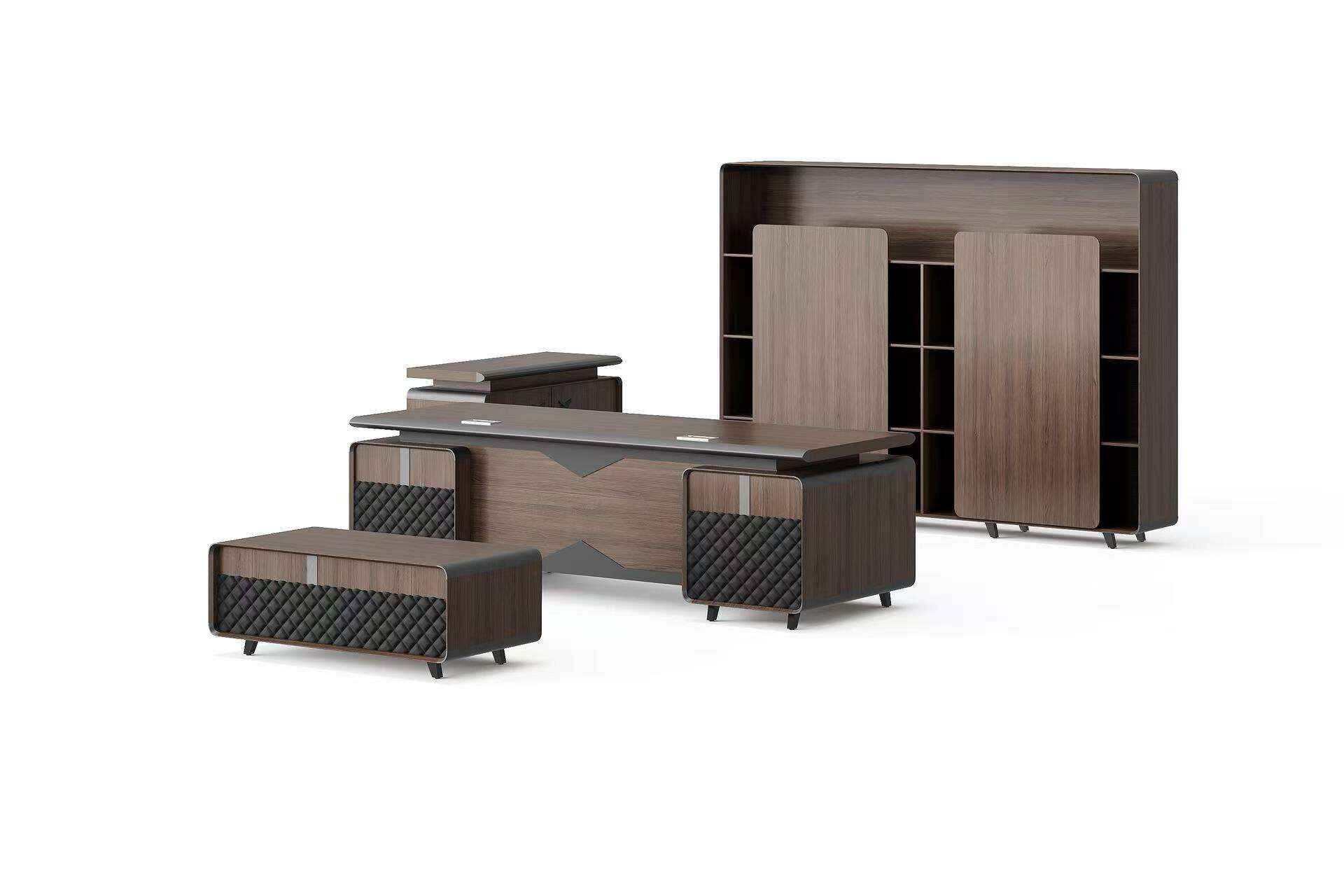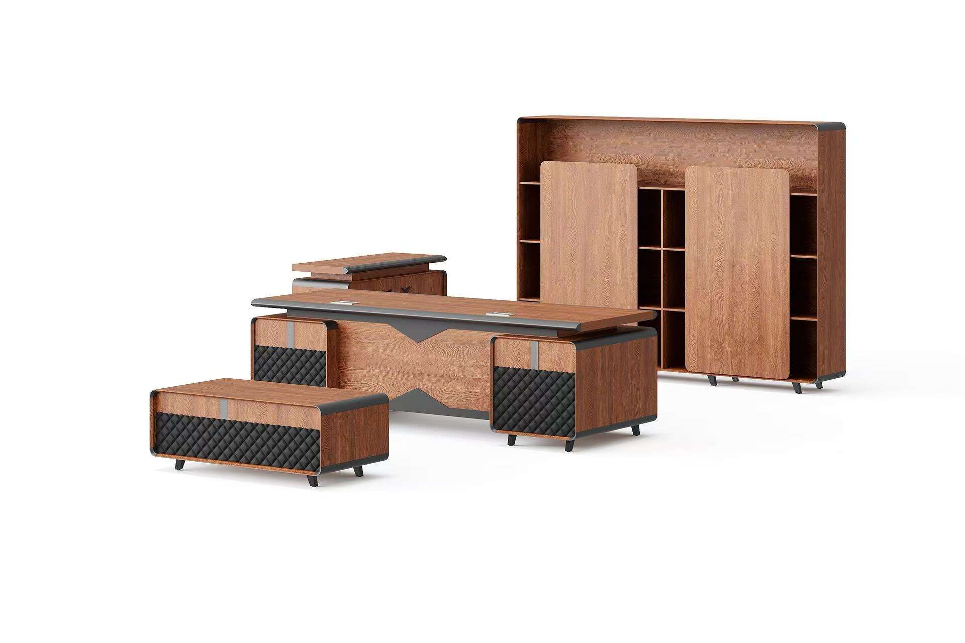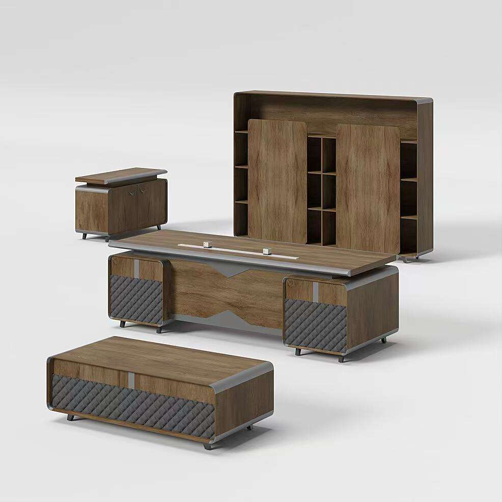 Apresentamos nossa mesa de escritório em estilo moderno. Este conjunto inclui uma mesa de escritório, uma mesa lateral, um armário e uma mesa de centro. Seu design exclusivo e esquema de cores fazem o conjunto de mesas se destacar. Oferecemos uma variedade de cores e tamanhos para você escolher, permitindo combinações personalizáveis para atender às suas necessidades.