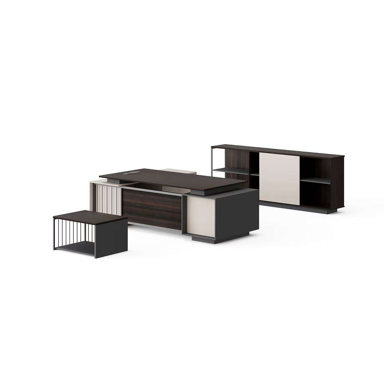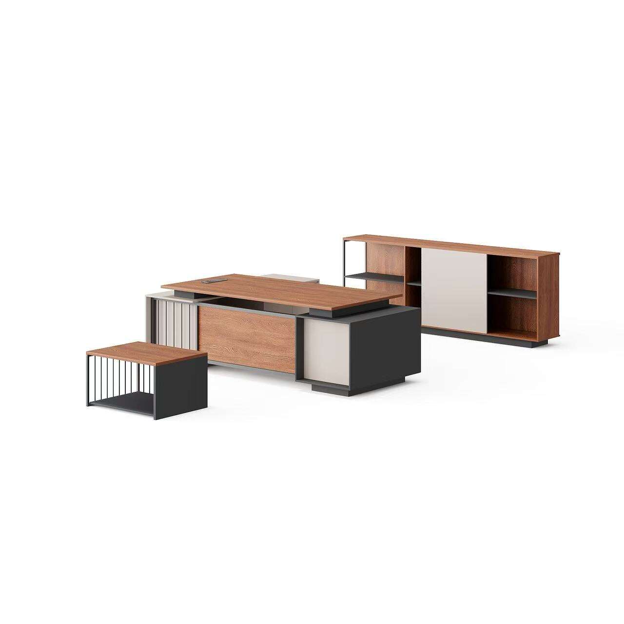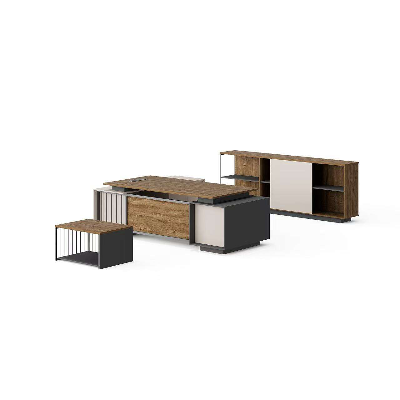 ขอแนะนำโต๊ะทำงานรูปตัวแอลสไตล์ทันสมัยของเรา ชุดนี้ประกอบด้วยโต๊ะรูปตัวแอล ตู้เก็บของ และโต๊ะกาแฟ การออกแบบและสีสันที่โดดเด่นทำให้ชุดโต๊ะนี้ดูแตกต่างอย่างมีเอกลักษณ์ เรามีให้เลือกหลากหลายสีและขนาด เพื่อให้คุณสามารถปรับแต่งการจัดชุดตามความต้องการของคุณได้